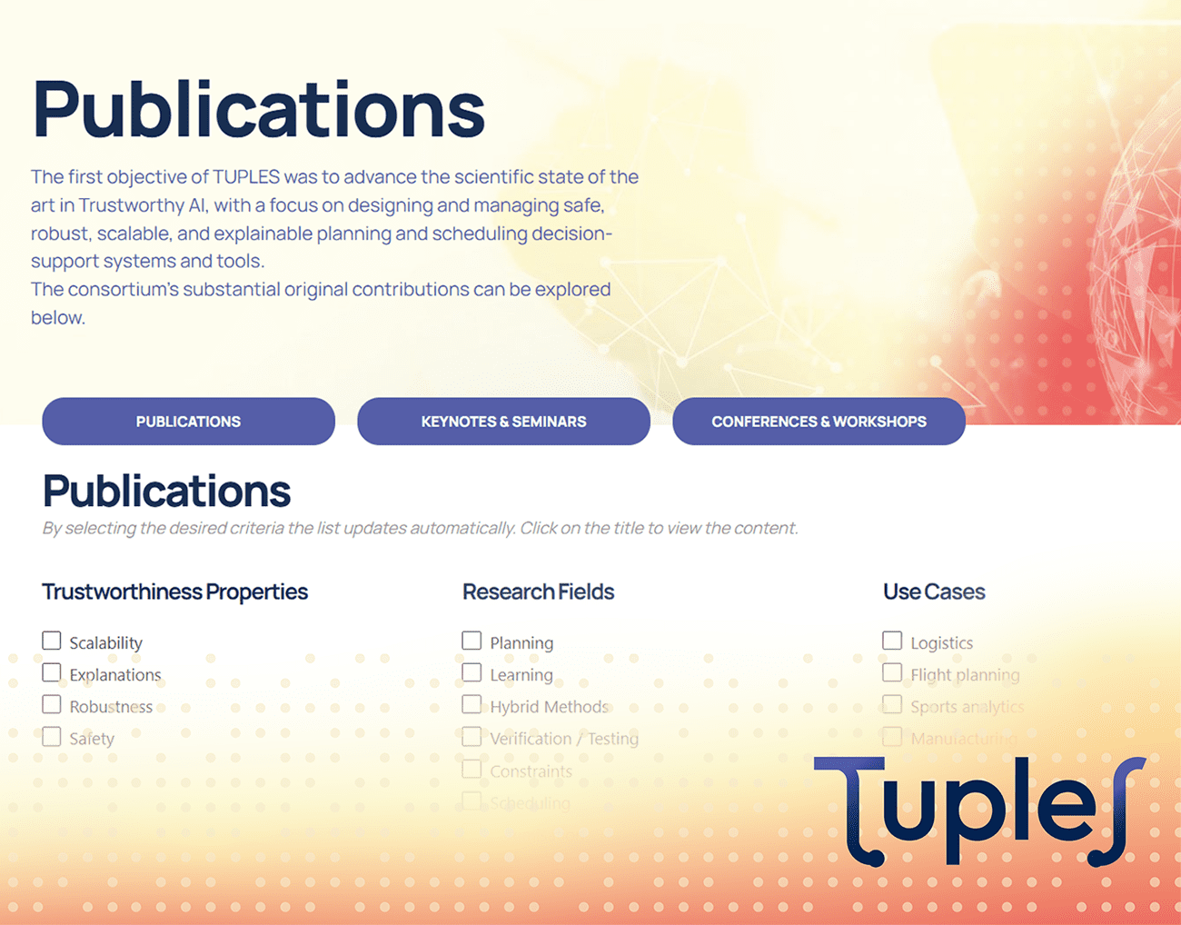 As the TUPLES project approaches its conclusion, we are proud to look back at one of its most formidable achievements: the outstanding scientific contribution generated over three years of intensive research and collaboration.